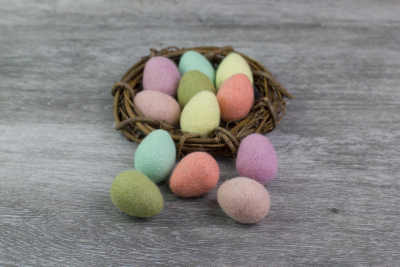 Celebrate Easter and spring with our handcrafted felt eggs, ideal for decorating your home or gifting to loved ones. Crafted from felted wool, these charming accent pieces add a playful touch to any Easter or spring tiered tray, bowl filler, or to include in your DIY craft projects.