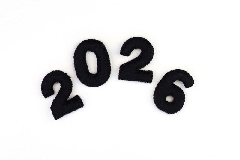 Numbers are made from black wool felt that has been stitched together and lightly stuffed, and measure approx. 3" tall each.